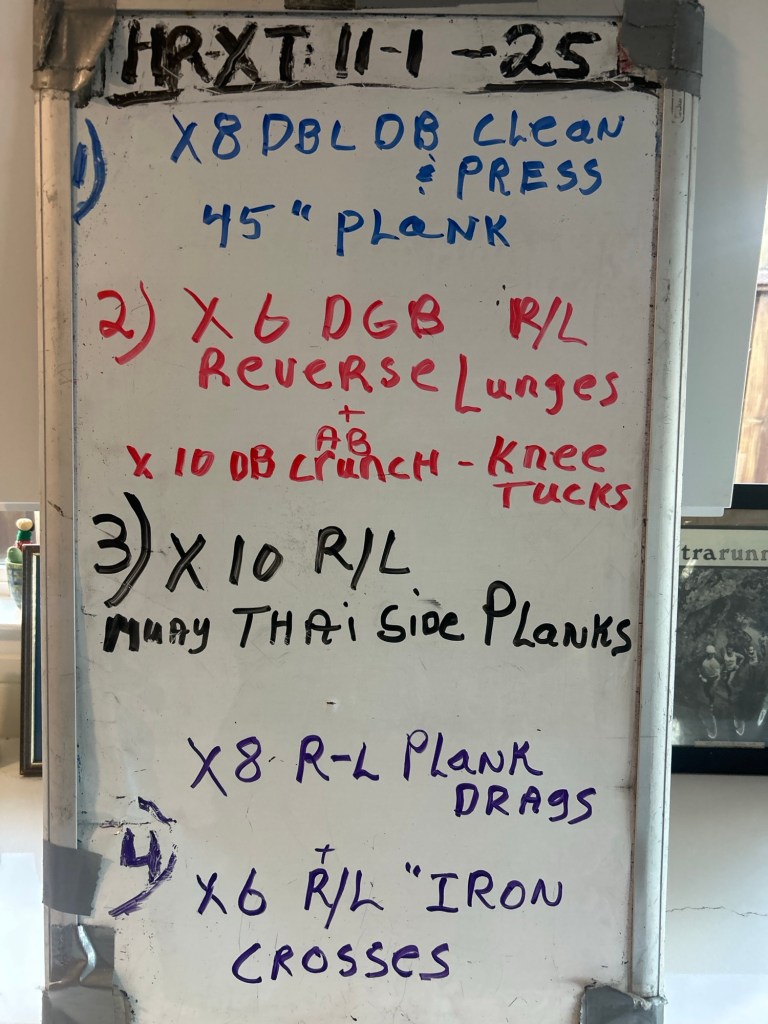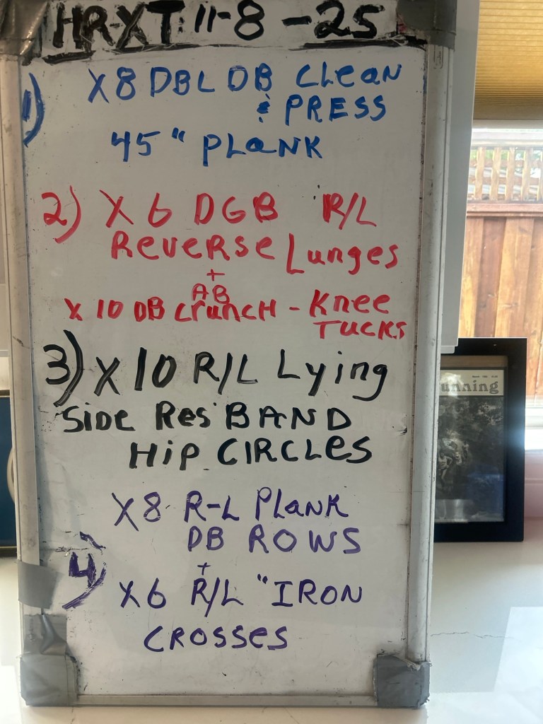 10/25/25 SATURDAY. HR/XT/MOBILITY/SWINGS/LOADED CARRIES/KB LIFTS/DEADLIFTS. 9 AM at Warren’s gym due to morning rain. It is located two blocks from Ciic Center at 148 MadisonAv, San Rafael..(from Civic Center light, go east for two blocks on N. San Pedro Rd, left on Washington to end of block; right on Madison , to fourth house on the right which is directly across from Natl Guard Armory. Garage/gym is in back. If parking is tight you can park in Jury parking lot at East end and come through the walk through gate and walk the 100 yards to the house.