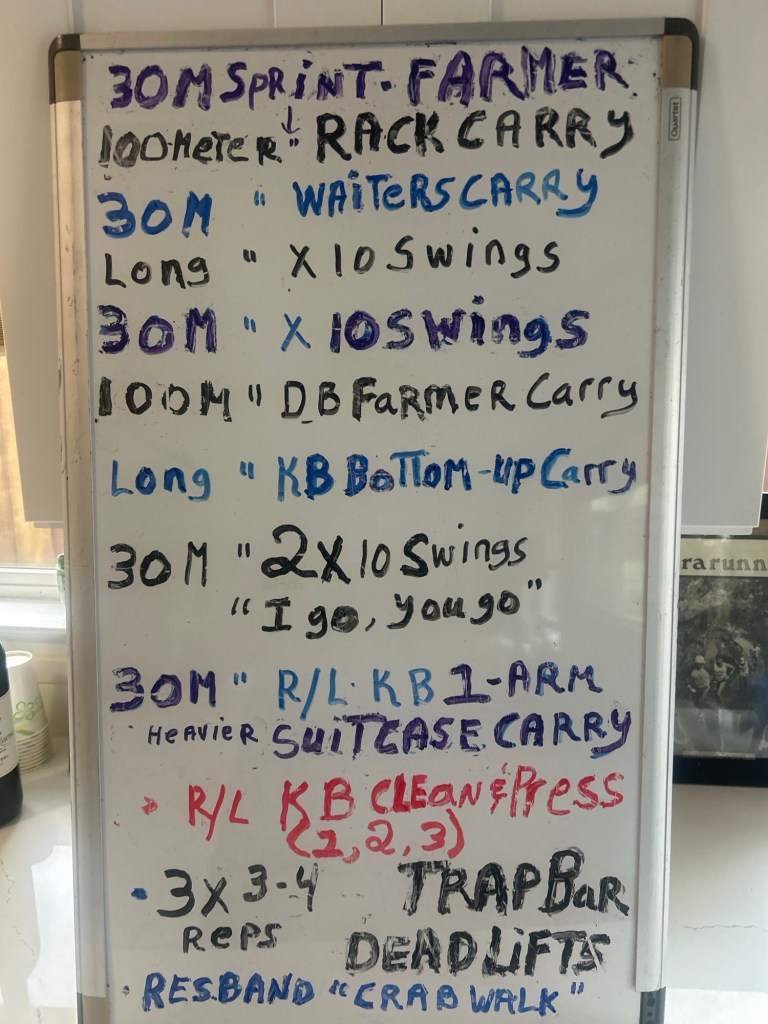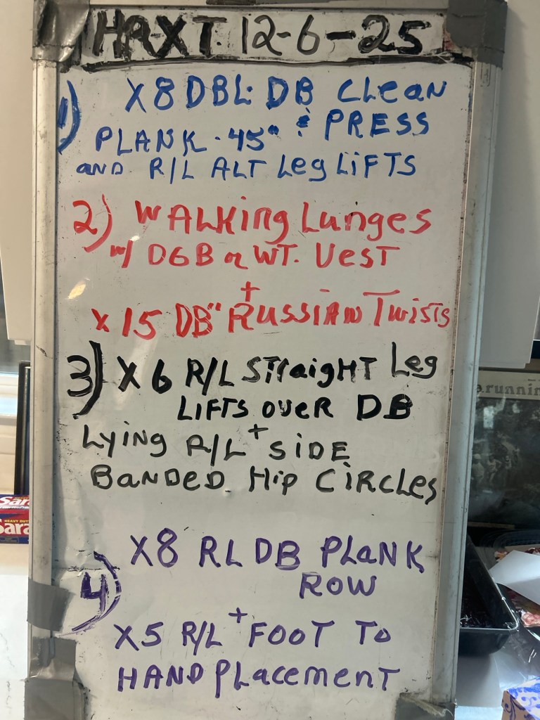 12/17/25 WEDNESDAY. STRENGTH TRAINING CIRCUIT/ MOBILITY/SWINGS/LOADED CARRIES/DEADLIFTS. 8 am at Warren’s gym . Get in your mobility warm-up and 50 swings prior to the circuit. ( Same as last Wednesday’s workout)