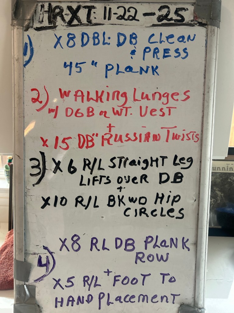 11/15/25 ….There will be NO Saturday workout, outdoors or indoors as we will be doing our early Thanksgiving with family – if, the airlines are functioning.
