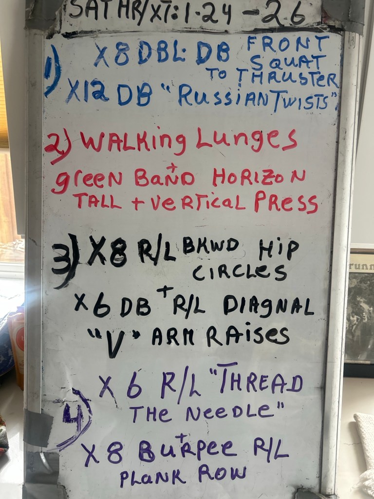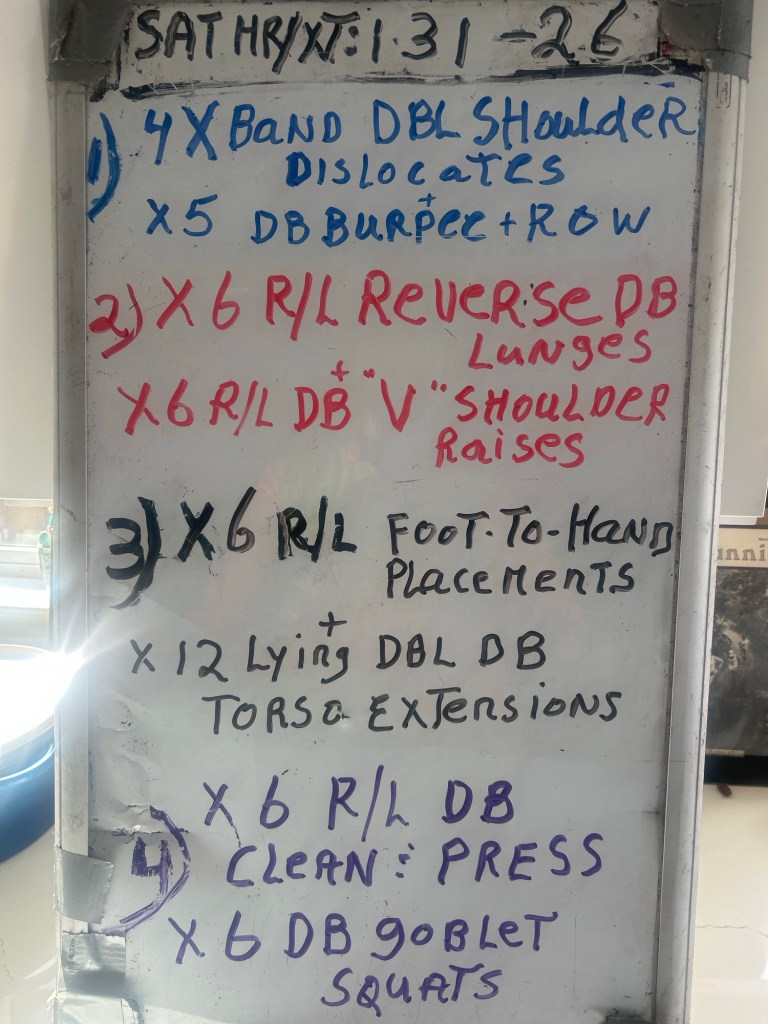 1/2/26 SATURDAY HR/XT/SWINGS/MOBILITY/LOADED CARRIES/KB LIFTS/DEADLIFTS. 9 AM at Warren’s gym because it will be a rainy day. Two blocks from the Civic Center, take N. San Pedro East for two blocks from Civic Center light; left on Jefferson, to end or block; right on Madison; go to 4th house on right #148. Gym is towards back.