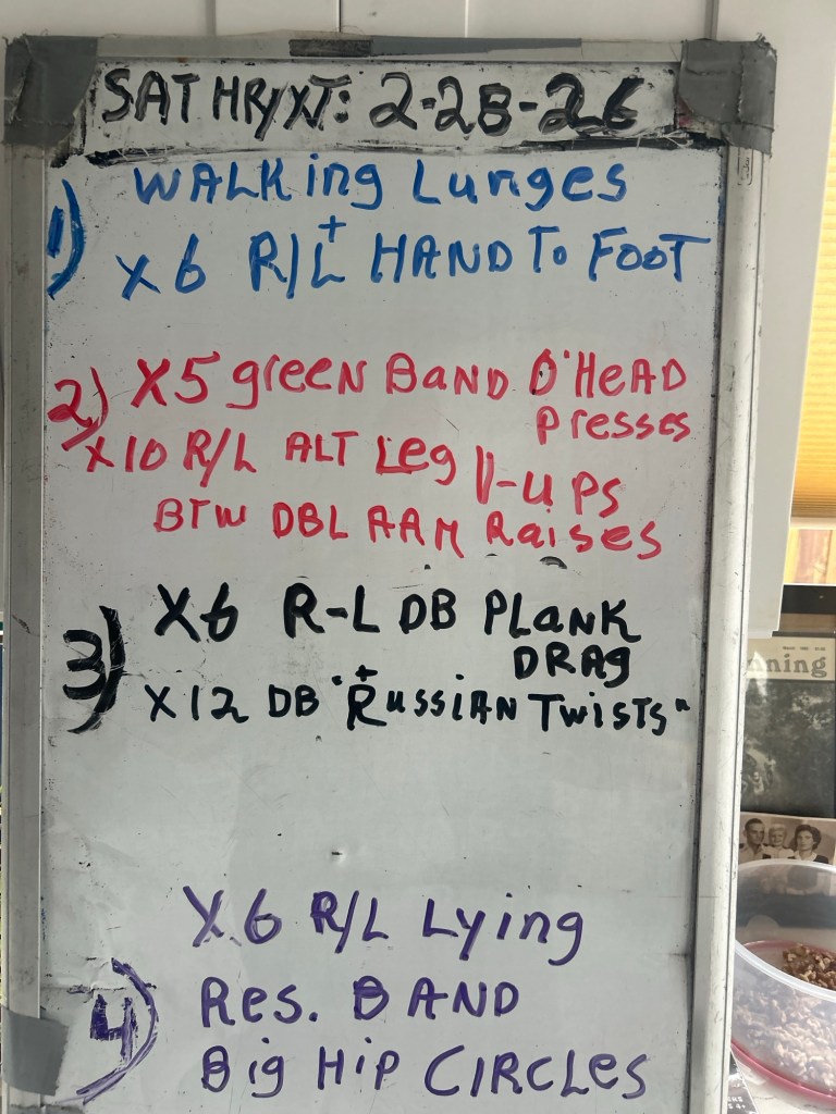 WEDNESDAY.2/25/26. STRENGTH TRAINING CIRCUIT/MOBILITY/SWINGS/KB LIFTS/CARRIES/DEADLIFTS. 8 am at Warren’s garage/gym (two clocks from Civic Center at 148 Madison Ave ; directly across from the Natty Guard Armory.
