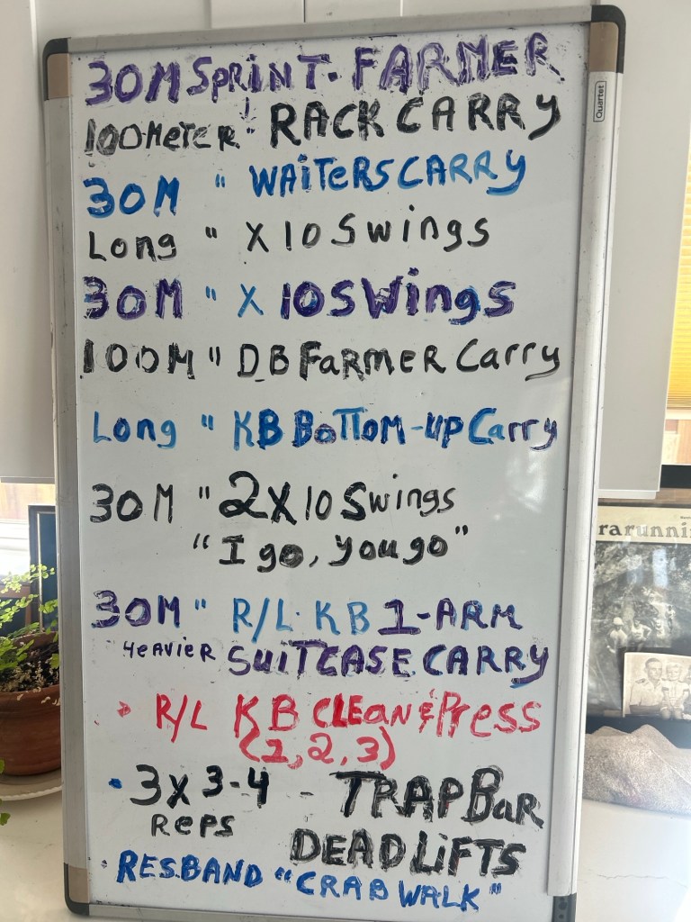3/l1/26. WEDNESDAY. STRENGTH TRAINING CIRCUIT/ MOBILITY/KB LIFTS/SWINGS/LOADED CARRIES/DEADLIFTS.. 8 am at Warren’s gym. Get in your mobility exercises and 50 KB Swings prior to the Circuit.