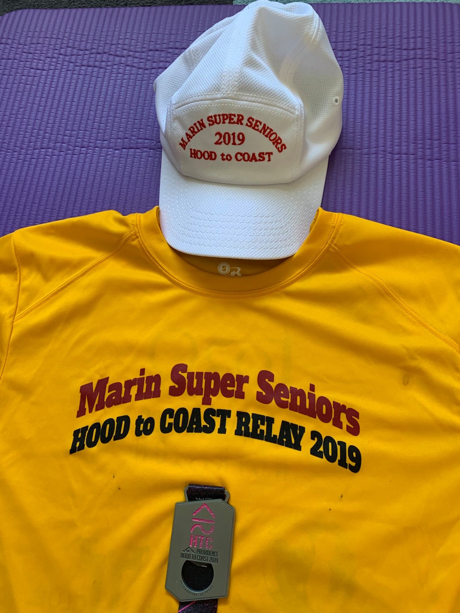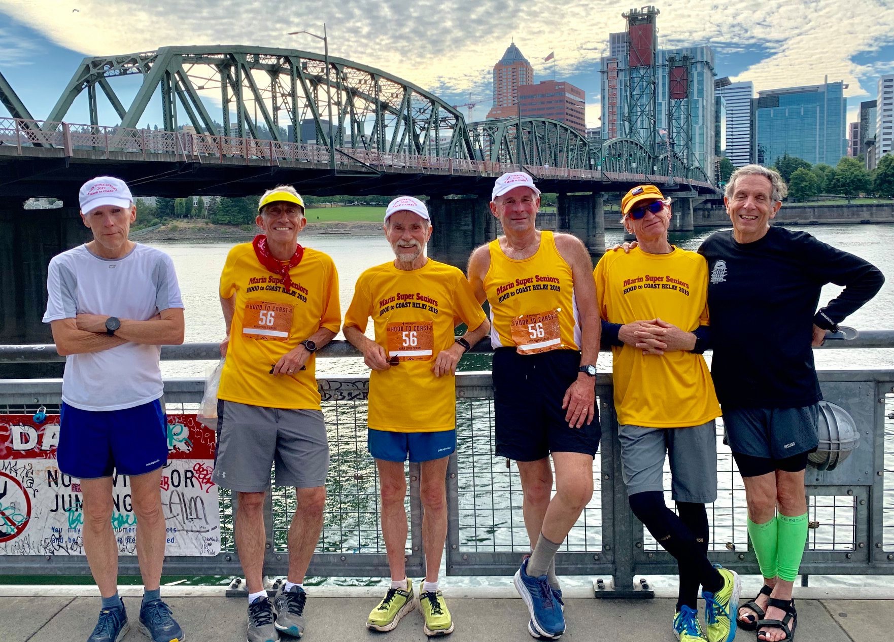 the Senior Tamalpa division ( 60 years average) ran the famous Hood to Coast Relay including the “Ever Ready Bunny, “Hans Schmid. A huge relay with 1200 teams and 2400 vans! If you ever get a chance to run this relay, do it! It’s a heck of an experience and memory maker. Tom O’Reilly, AJ Kallet, Hans Schmid, ___, David Stancliff, Warren Dalton.. ( I forgot one name here, my apologies)…