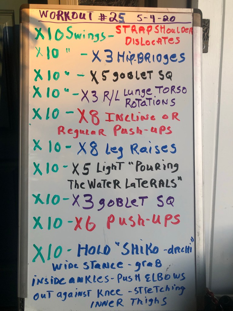 5/6/20 WEDNESDAY. WORKOUT #25….note, I had an error with the upload of #24; i think we had two #24’s.