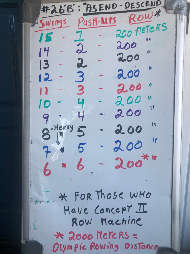 5/4/20 MONDAY. Workout #24 “On The Minute” ( OTM) workout. Here’s where you start each set of swings OTM; you’ll have fewer reps of exercises because the clock keeps moving. This workout you can do when adding another day of swings and includes some extra mobility exercises. As you build on your reps for this extra day of swings you can stop at 40, 50 or 60 swings if not ready for the 100 reps total. That will come quickly; just a bit more taxing OTM method.