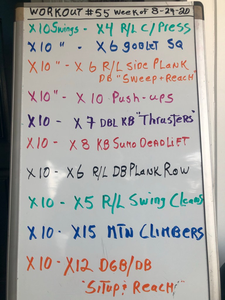 8/26/20. WEDNESDAY. STRENGTH TRAINING day with Workout #55.
