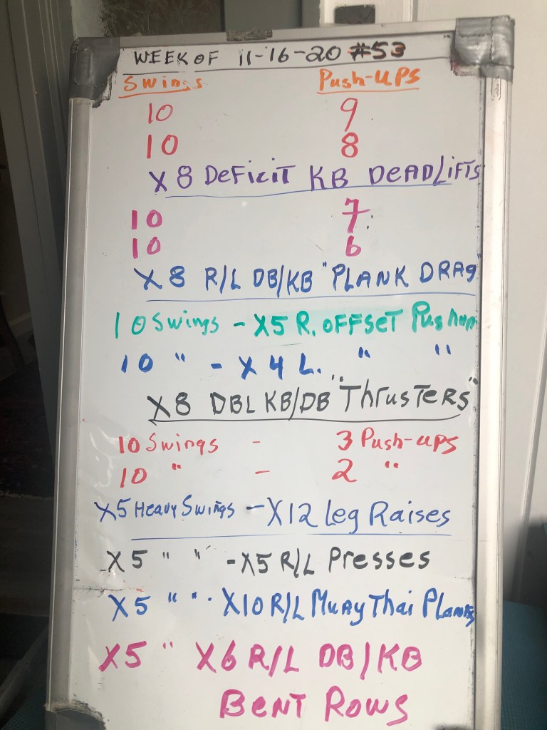 11/18/20 WEDNESDAY. STRENGTH DAY. This one will be on your own at home; no workout in my front yard this week due to rain. I have posted the “regular” workout, and add an at home workout with fewer exercises.