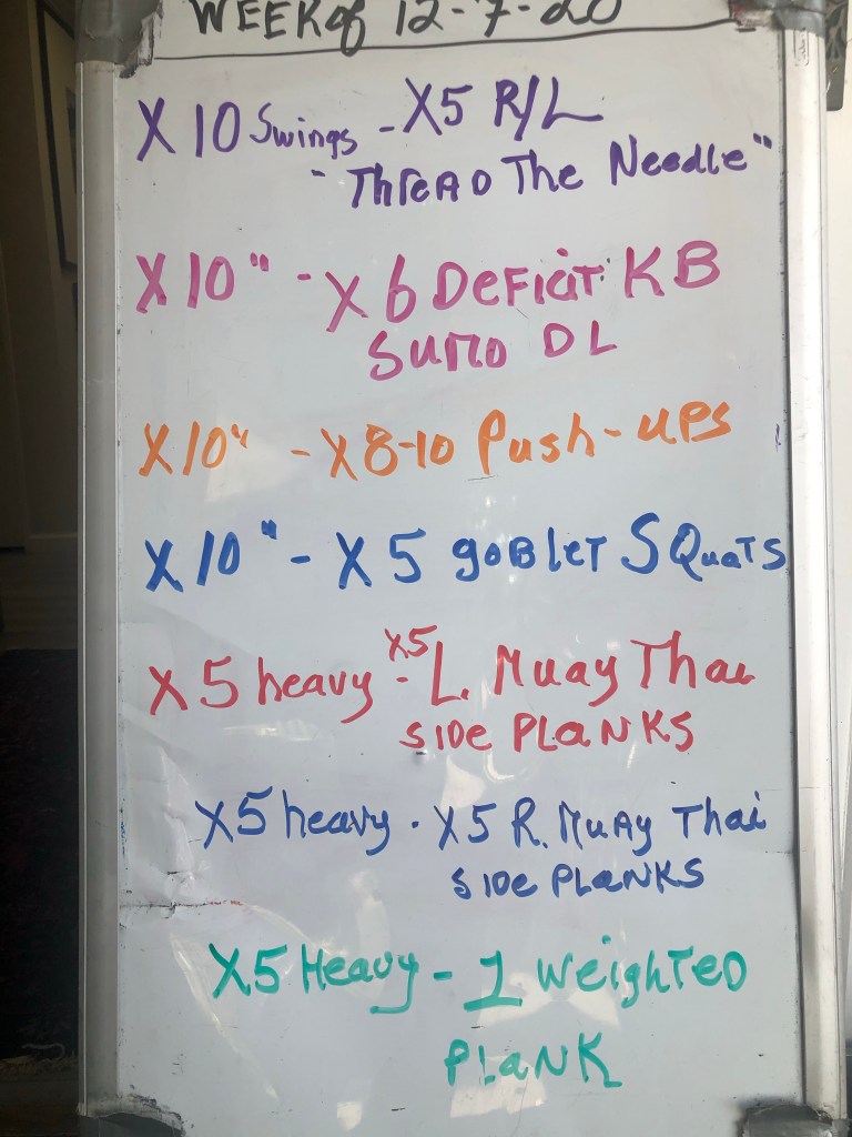 12/9/20 WEDNESDAY. STRENGTH day and the routine for this week. Keeping with your daily routine of 25 (Novice) or 55 reps (Regular kettlebell practitioners) for Wednesday, you’ll see I’ve added some exercises to this day’s program.