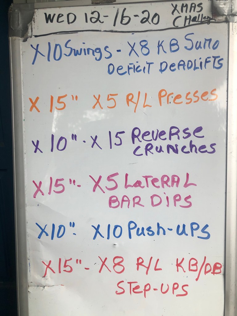 12/16/20 WEDNESDAY. STRENGTH DAY workout. (see photo of white board).