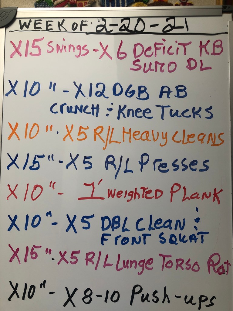 2/17/21 WEDNESDAY. STRENGTH WORK day.