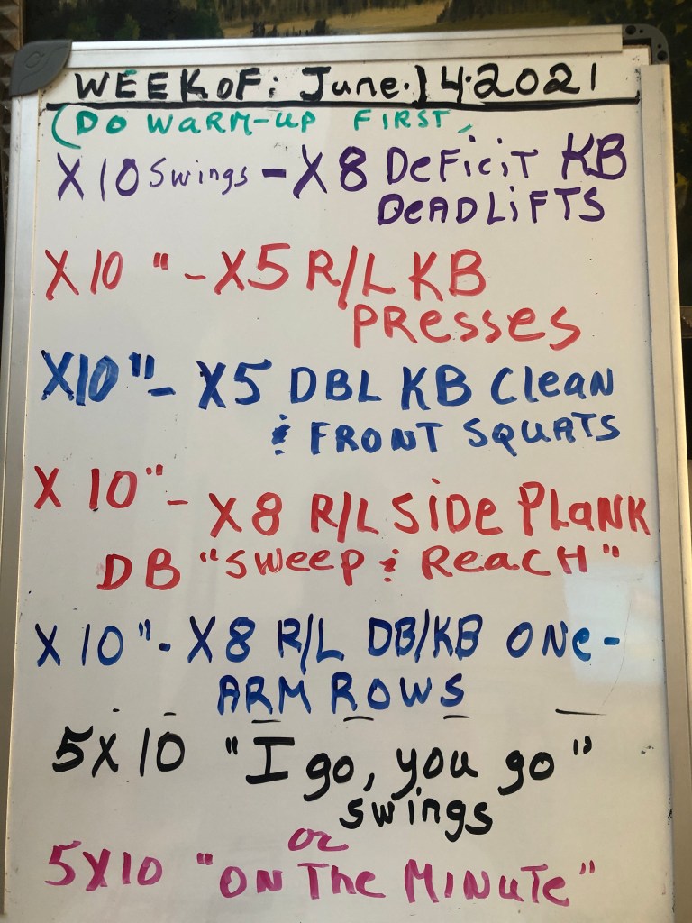 6/16/21 WEDNESDAY. STRENGTH workout for this week. After doing Halos, goblet squats, and lunge torso rotations , get in: