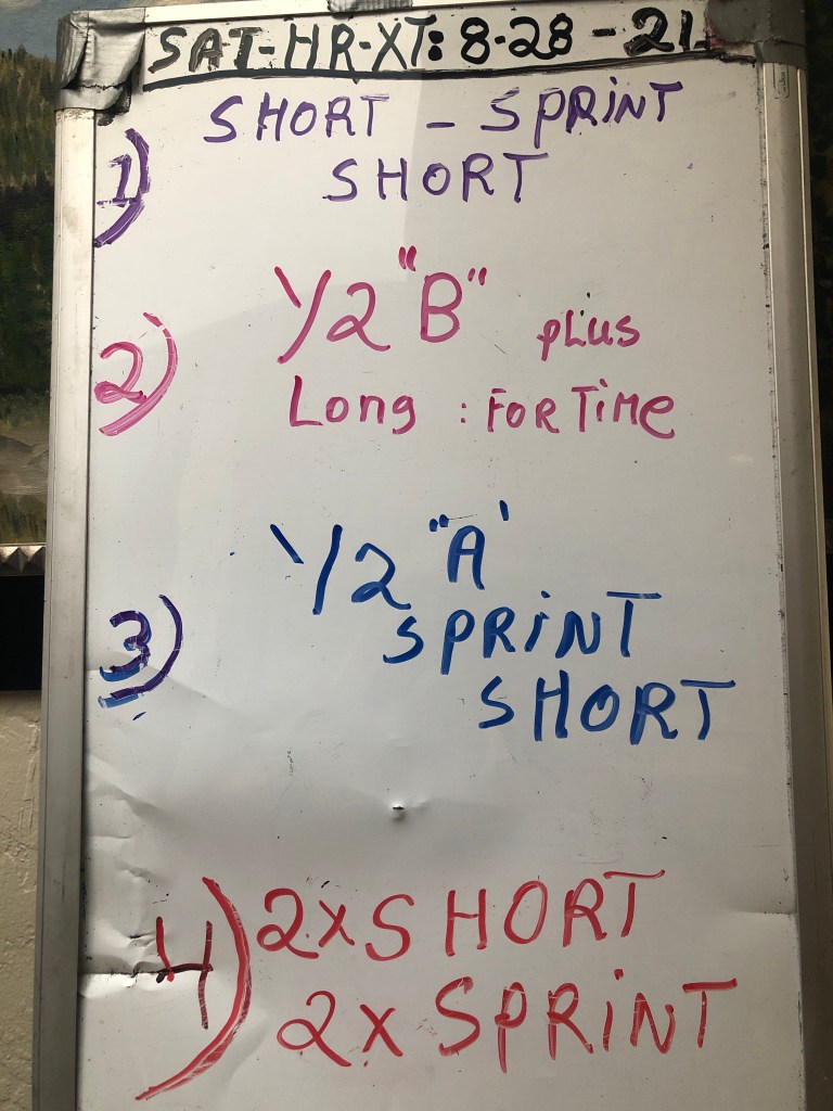 8/26/21 THURSDAY. SPEED-WORK. Preferably on a track. After the mile or so warm-up, some drills such as Skips, butt kicks and 30 meter quick cadence stride-outs, you’ll do FOUR ROUNDS of: