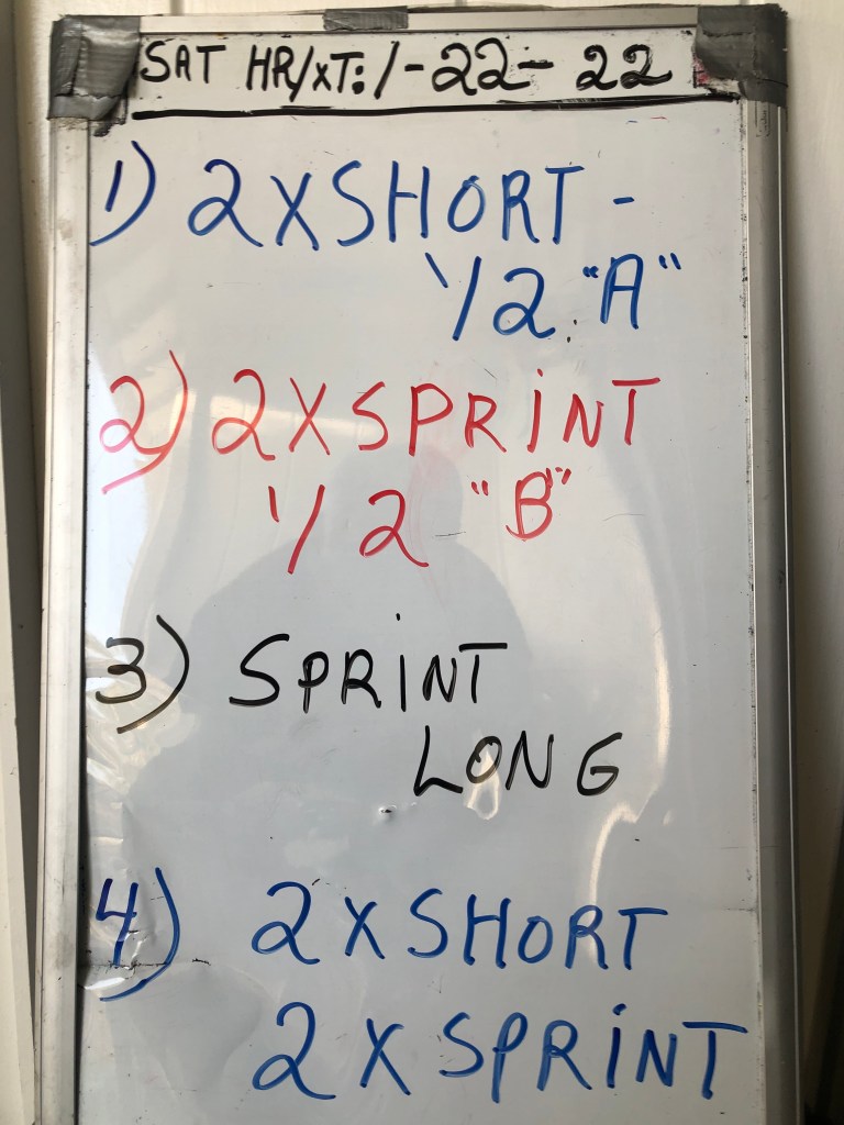 Weather looks good for a week of solid training with a bit more daylight each day; workouts will be held for Wednesday and Saturday.