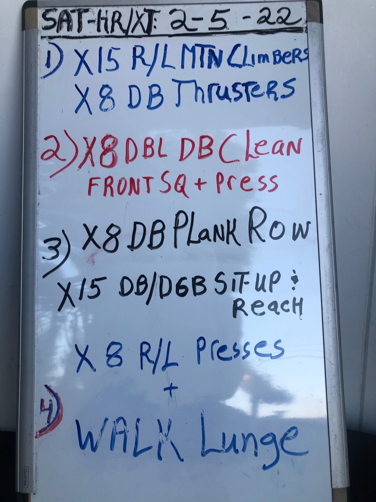 2/5/22 Saturday: SATURDAY HILL REPEATS/XT/LOADED CARRIES/SPRINTS (see above)