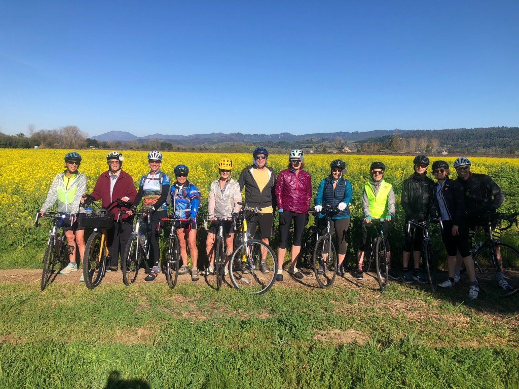 We had a delightful “Mustard Ride” with about fifteen members of the workout group on Sunday with perfect weather for cycling and enjoying what Napa Valley has to offer. Our ride began and finished in Yountville which provided ride distances from 12 – 25 miles or more: something for everyone. We had lunch and social time in Yountville Park after the ride; connecting with friends is so important.