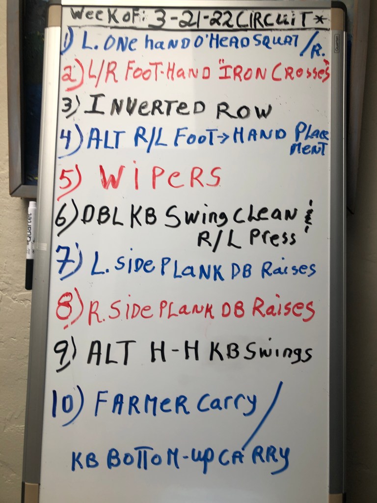 3/23/22 WEDNESDAY. STRENGTH TRAINING CIRCUIT & Trap Bar Deadlifts. 8:15 am at Warren’s gym.