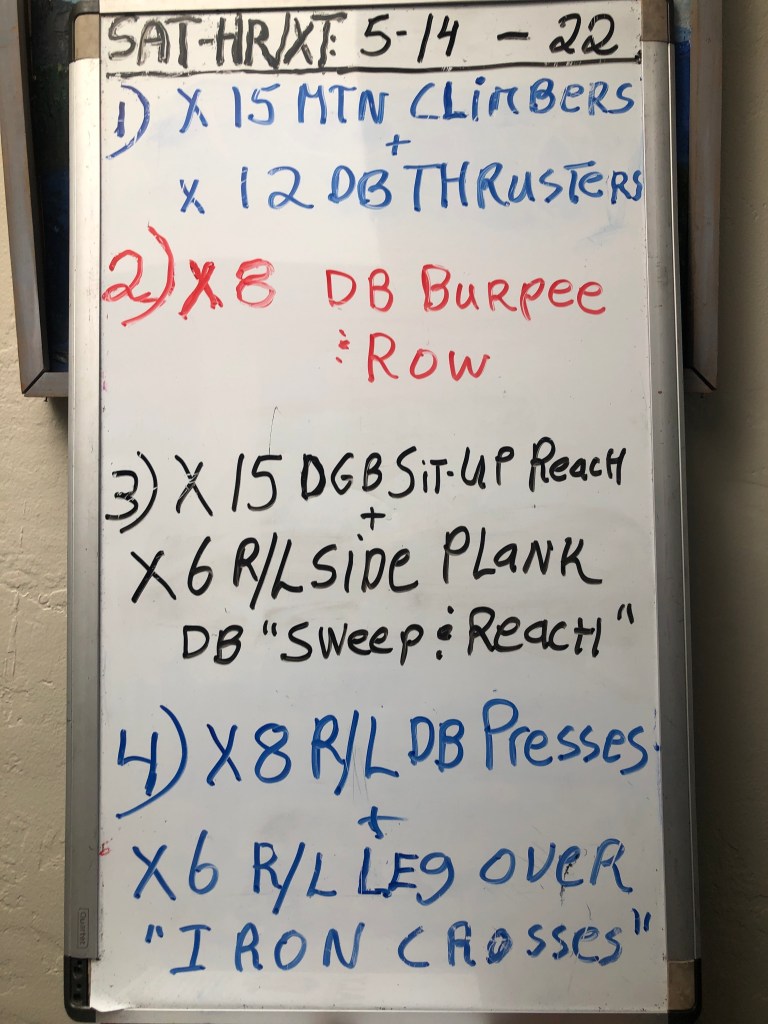 5/11/22 WEDNESDAY. STRENGTH TRAINING CIRCUIT, Swings and Deadlifts at Warren’s. 8:15 am start. After your warm-up mobility exercises, goblet squats, hip raises and halos we get in the 60 KB Swings.