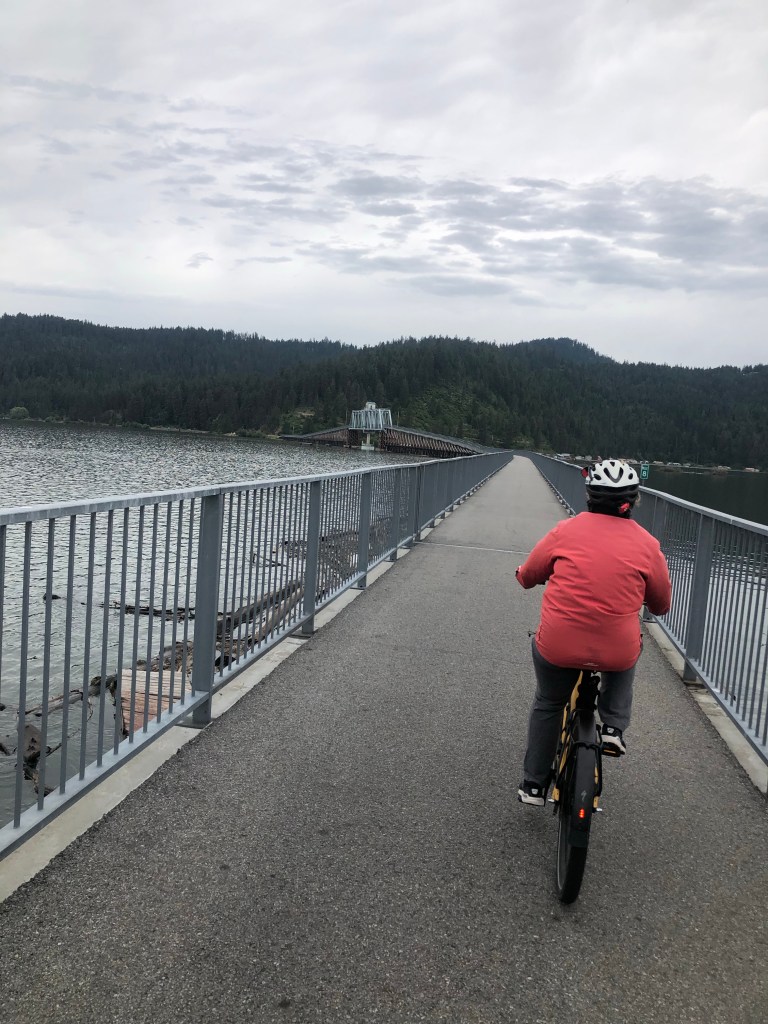 Just did ride with Sandy from Weed for an out and back course looping around the base of Mt. Shasta: always a spectacular view! Then we head towards Sunriver area to overnight and do the long climb up Mt. Bachelor in the morning. The winds continue to be strong in this area also; makes riding in the early am a must, but it is in the 30’s and 40’s this far north.