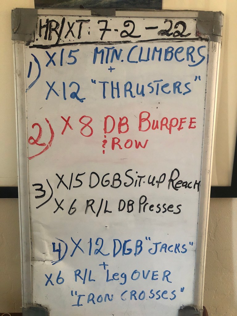 6/29/22 WEDNESDAY. STRENGTH TRAINING CIRCUIT and Deadlifts. 8:15 AM.