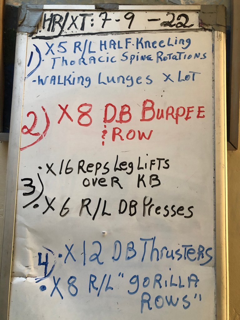7/6/22 WEDNESDAY. STRENGTH TRAINING CIRCUIT and Deadlifts. 8:15 start at Warren’s. We do 35″ exercise / 25″ recovery at each station.