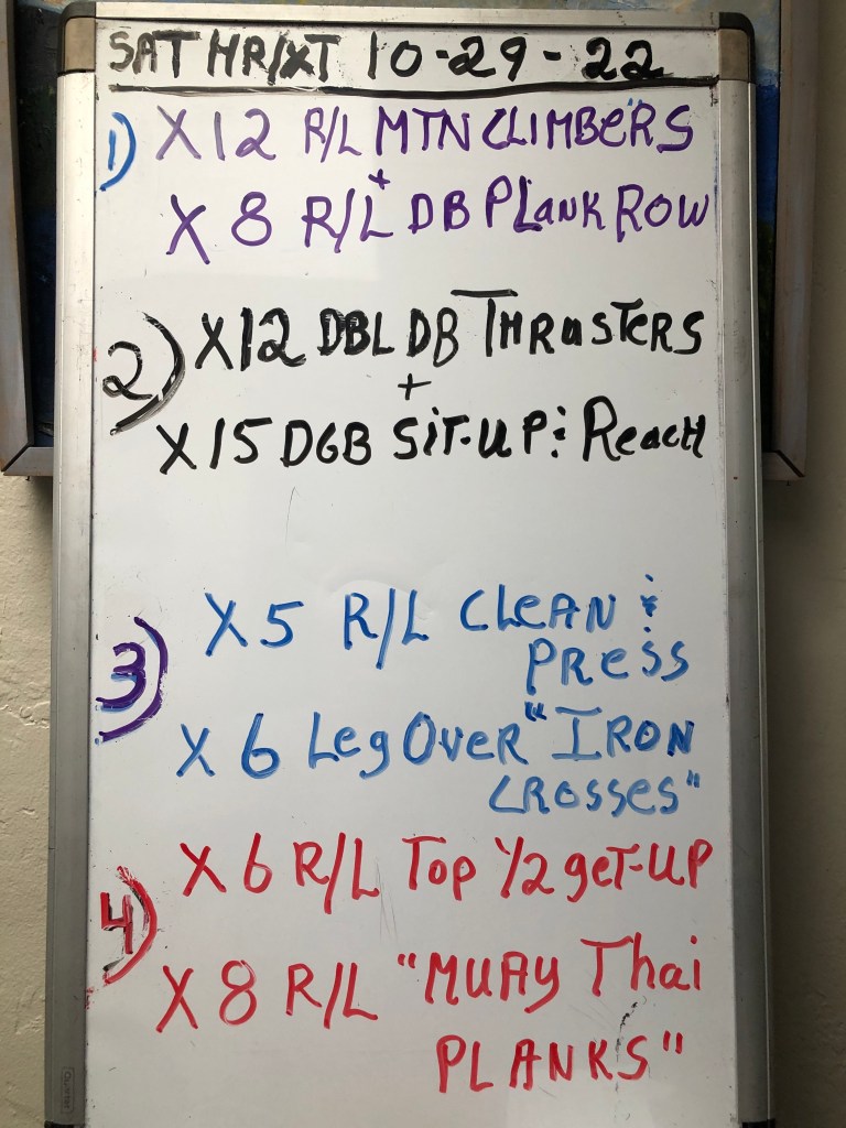 10/26/22 WEDNESDAY. STRENGTH TRAINING CIRCUIT, SWINGS, TRAP BAR DEADLIFT. 8:15 AM at Warren’s; arrive 8:05 to get in warm-up and mobility exercises.