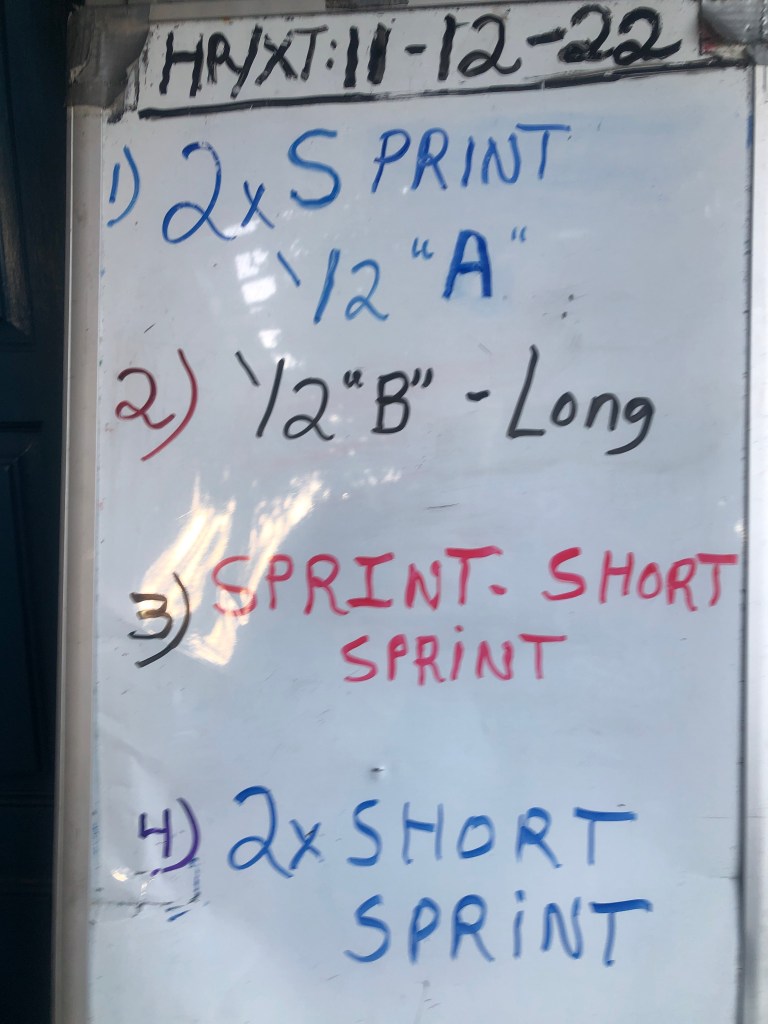 11/10/22 THURSDAY. SPEED-WORK at your local track. Warm-up mile, a few drills, 6 x 30 meter pick-ups, 2 x 100 (100); then 6 rounds of: (400 at 5K pace; then on the 2’/2:30/or 3′ run a 200 at mile pace followed by 200 recovery. )Repeat the pattern for 5 more rounds