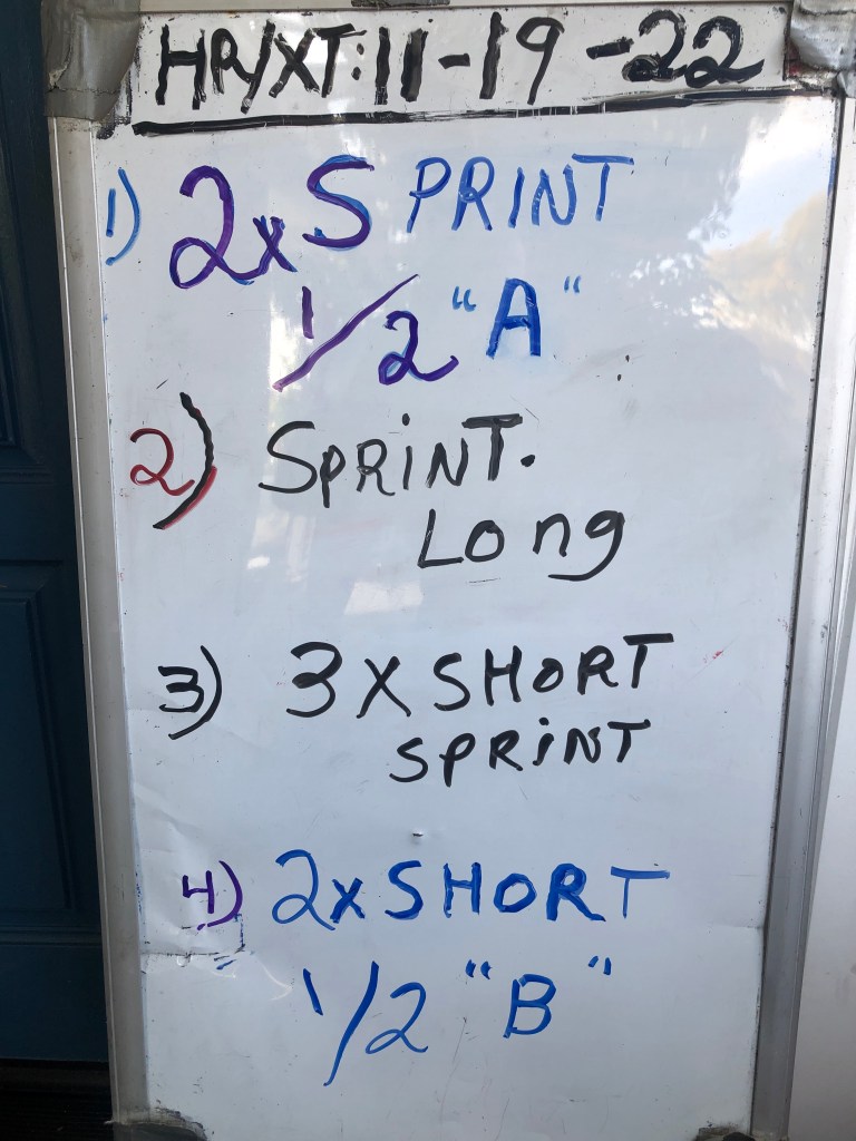 THURSDAY 11/17/22 SPEED-WORK at your local track. After the warm-up mile, 6 x 30 meter pick-ups, 2 x 100 (100) meters: