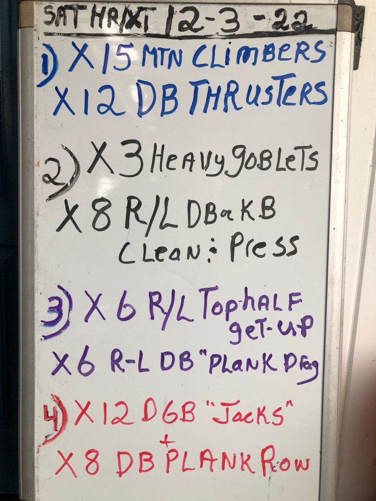 Update regarding Saturday HR/XT workout: on 12/3/22 – Cancelling Sat workout due to rain!