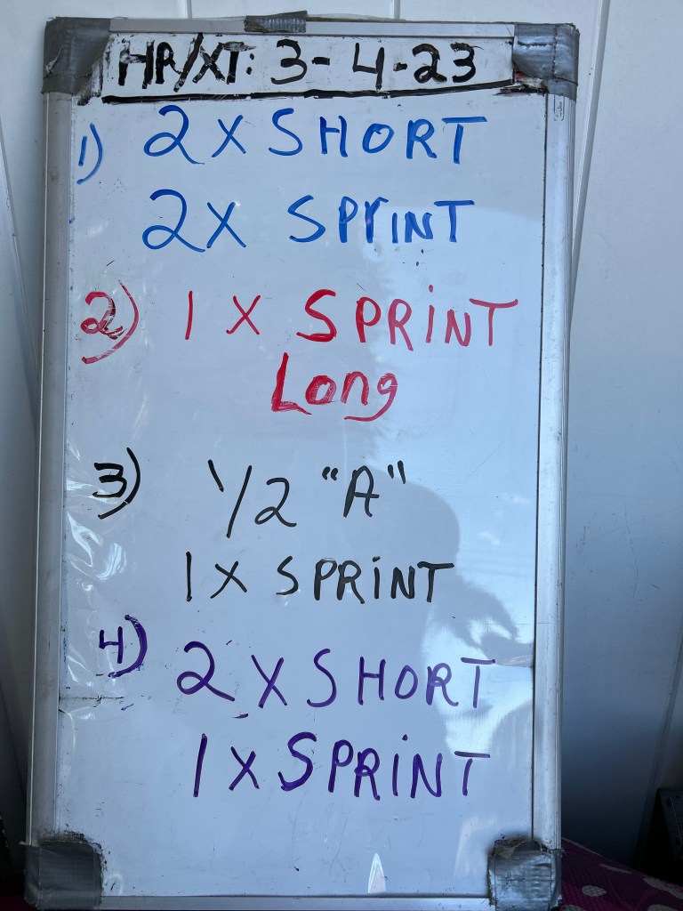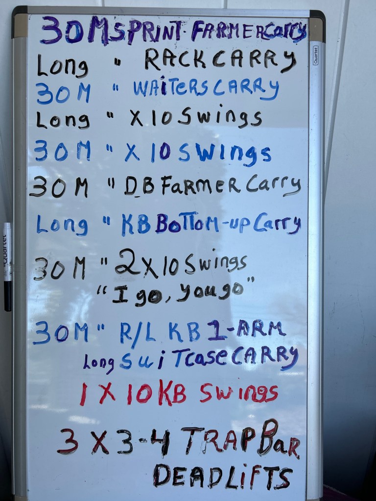 3/4/23 SATURDAY. HR/XT/LOADED CARRIES/SWINGS/ SPRINTS/TRAP BAR DEADLIFTS. 9 AM (CANCELED due to rain)
