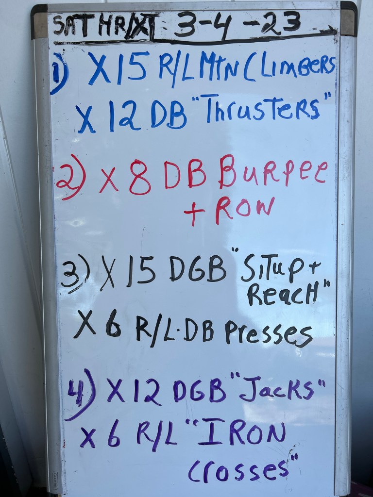 UPDATE on Friday, 3/3/23: Another wet week ahead for us all; we’ll have to get in training between the bouts of inclement weather; it changes by the day as to when it will rain. We will NOT hold the Saturday HR/XT workout: it will be raining right during our workout time slot.