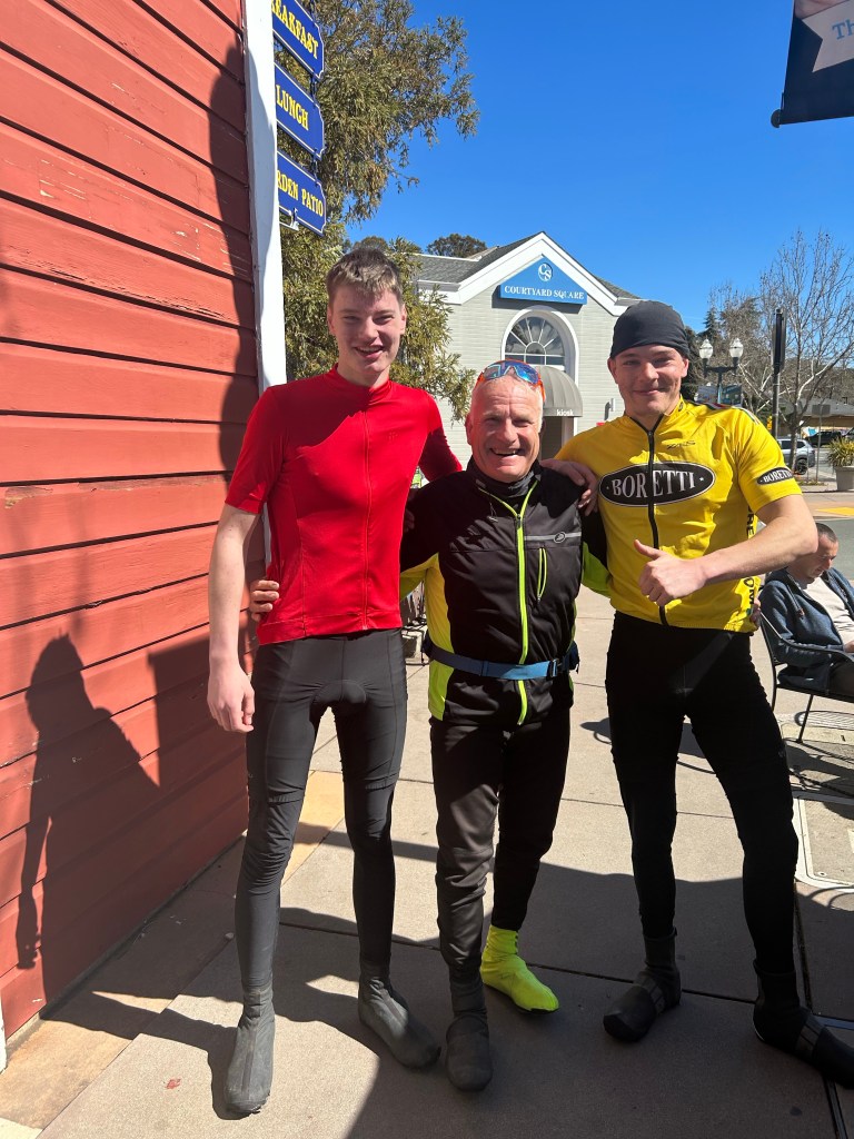 We took them to lunch and coffee at Dr.Insomniac’s in Novato, shared stories; then rode with them until we had to part ways near Ignacio. Always enjoyable to meet fellow cyclists touring our country!