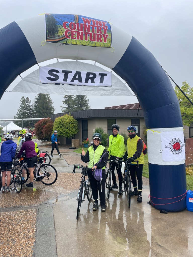 Dave, Judi and I did go up to the Wine Country Century event and opted to ride the 34 miler instead of 100K. We arrived in a drizzly rain, by 9:30 it stopped, but we ride through three light showers for the remainder of the scenic ride. Numbers were down for the event probably due to the rainy January through April. Santa Rosa Cycling Club does a superb marking the course and provided well stocked aid stations.