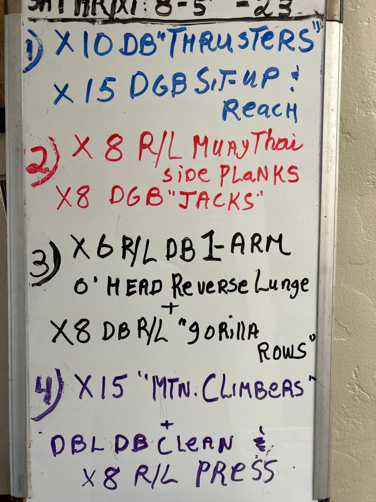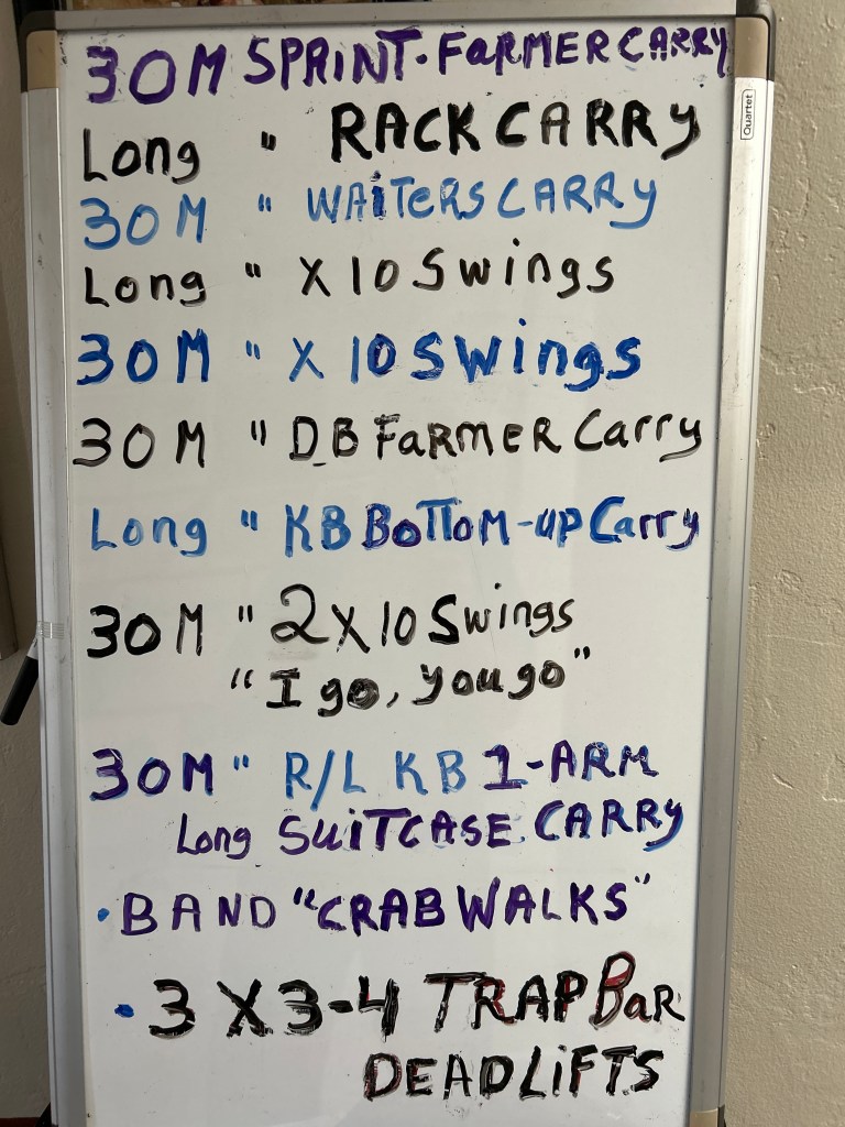 8/2/23 WEDNESDAY. STRENGTH CIRCUIT/SWINGS/TRAP BAR DEADLIFTS. 8:15 Start at Warren’s Gym. After warm-up we’ll do 5 x 12 Swings. Then two rounds of:
