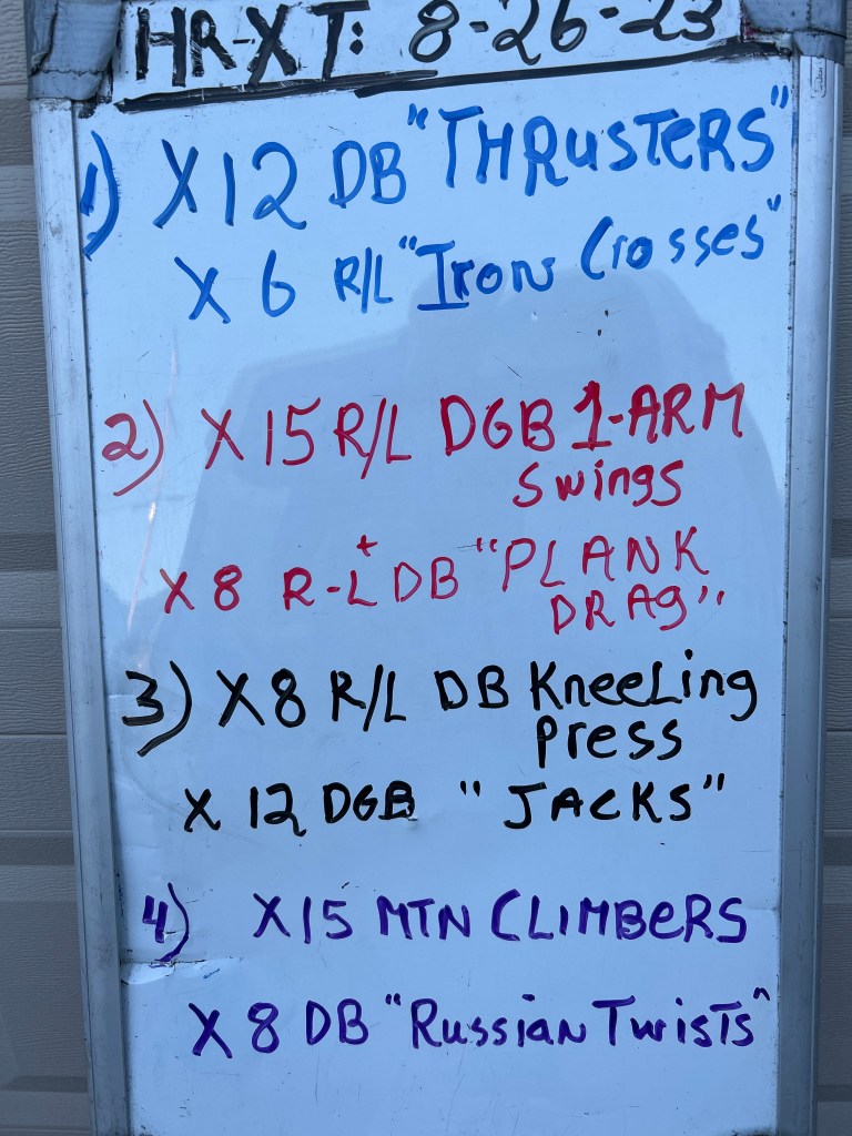 8/26/23 SATURDAY. HR/XT/LOADED CARRIES/SPRINTS/TRAP BAR DEADLIFTS. 8:30 AM back in Lot BC of Seminary College ( 201 Seminary Drive); I’ll open the lot about 8:10 AM.