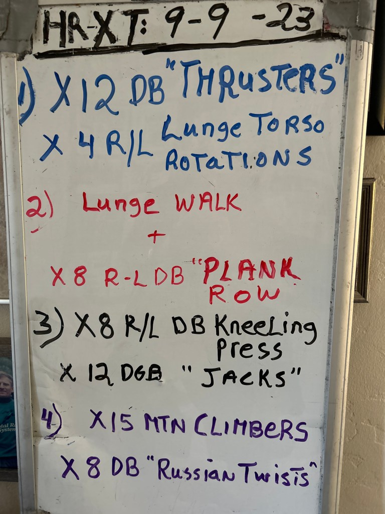 9/6/23 WEDNESDAY. STRENGTH TRAINING CIRCUIT/ SWINGS/ TRAP BAR DEADLIFTS. 8:15 AM start; arrive early to get in your mobility/warm-up exercises and 5 x 12 Swings.