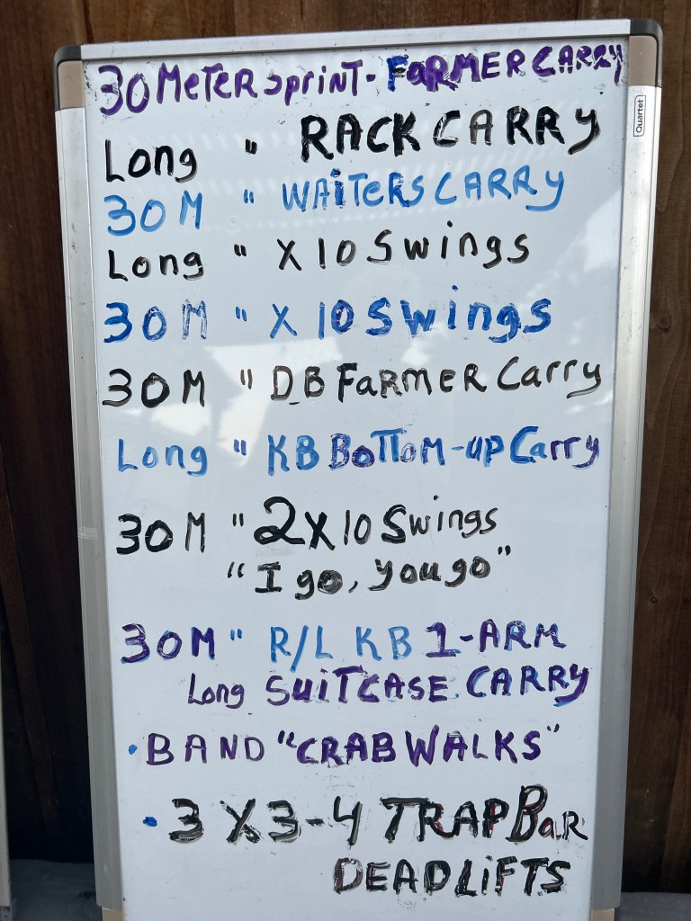 9/27/23 WEDNESDAY . STRENGTH TRAINING CIRCUIT/ SWINGS/ LOADED CARRIES/ TRAP BAR DEADLIFTS. 8:15 AM start at Warren’s gym. Arrive a bit early to get in your mobility exercises.