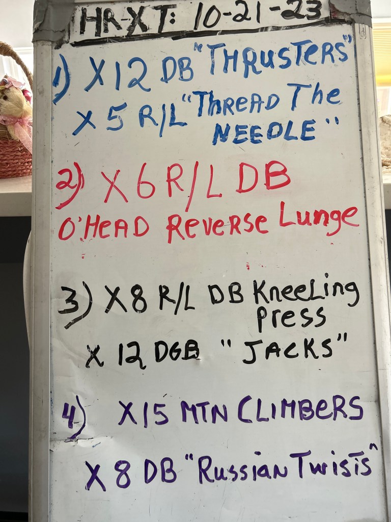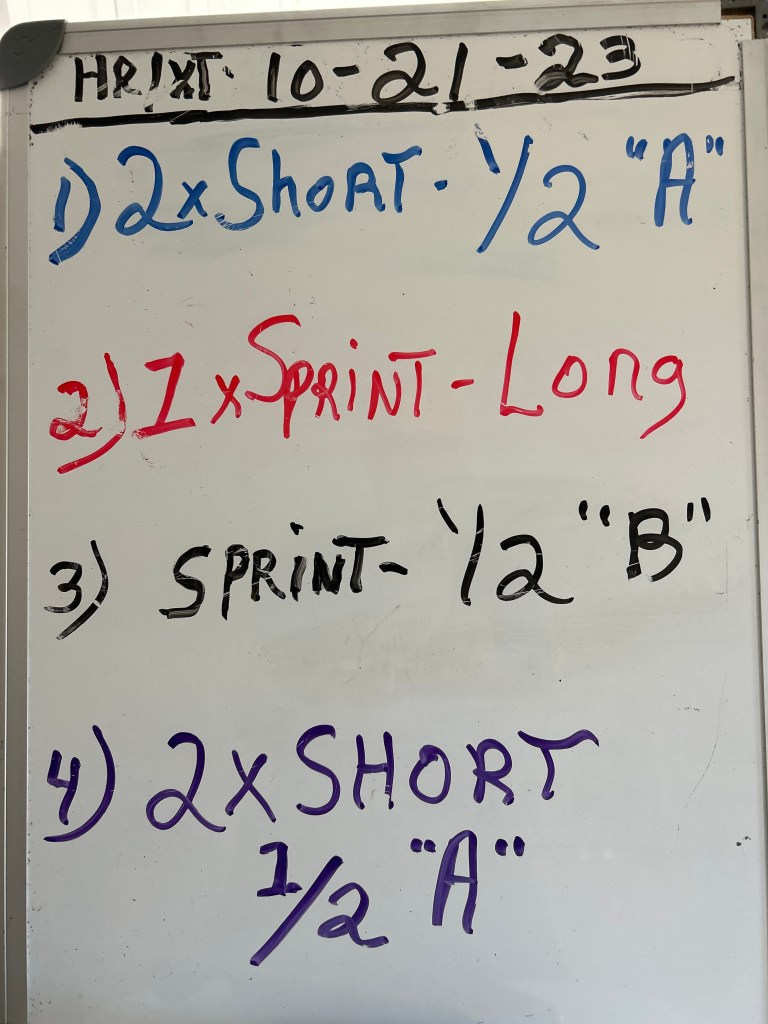 10/21/23 SATURDAY. HR/XT/SPRINTS/LOADED CARRIES/ SWINGS/ TRAP BAR DEADLIFTS. 8:30 AM start in Lot “C” (chain barrier will be opened by 8:10 so you can do your warm-up while I set up. Let me know if you will be attending!