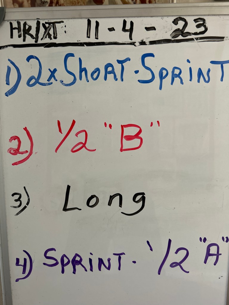 11/2/23 THURSDAY. SPEED-WORK on your local track (most go to COM).