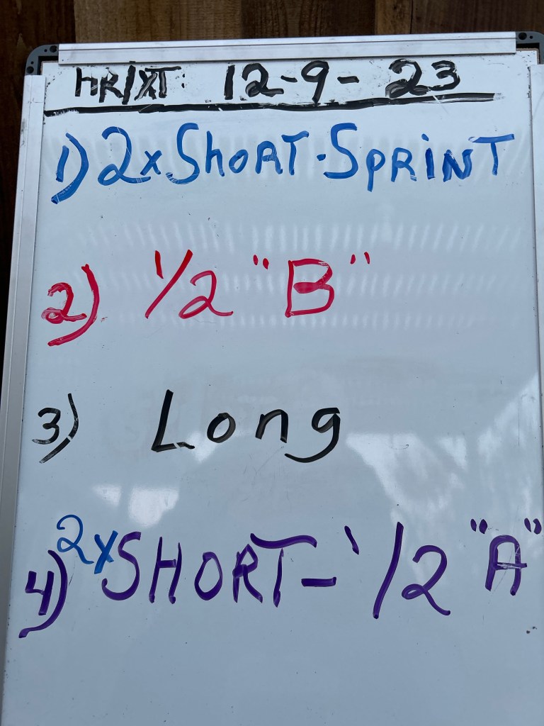 12/5/23 TUESDAY. TEMPO workout to simulate build race fitness. After your warm-up mile you’ll up the pace to a threshold level, about 10K – 10M race pace.