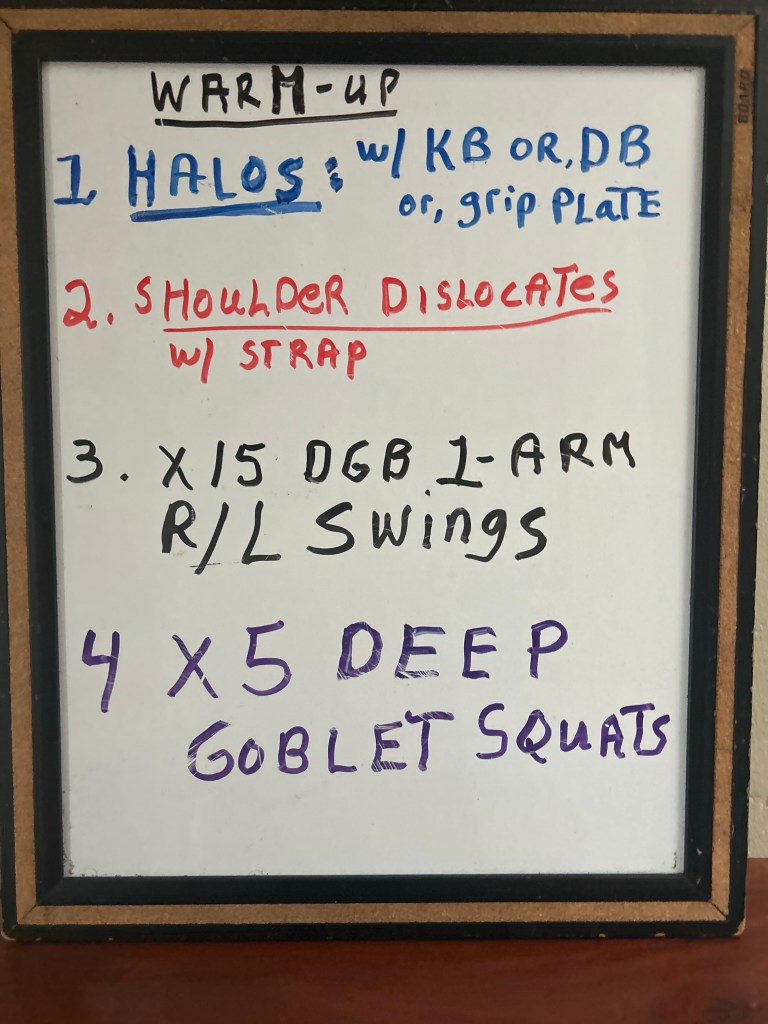 12/13/23 WEDNESDAY. STRENGTH TRAINING CIRCUIT/SWINGS/TRAP BAR DEADLIFTS. 8: AM. at Warren’s garage gym. Get in your mobility exercises upon arrival – and keep it moving; then we’ll do our 5 x 12 KB Swings prior to the Circuit.