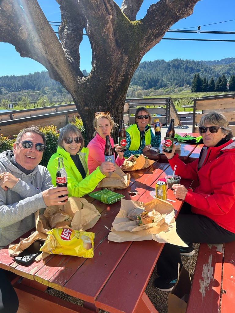 Last Sunday a few members of the group did a ride on Dry Creek Rd and West Dry Creek Road past a good number of vineyards on a perfect day for cycling, with a stop two-thirds of the way through with a stop for lunch at the Dry Creek Deli. The course we rode is part of the Wine Century 100K course and Asti Tour De Vine which had their lunch stations near in the large parking lot near the base of Lake Sonoma dam.