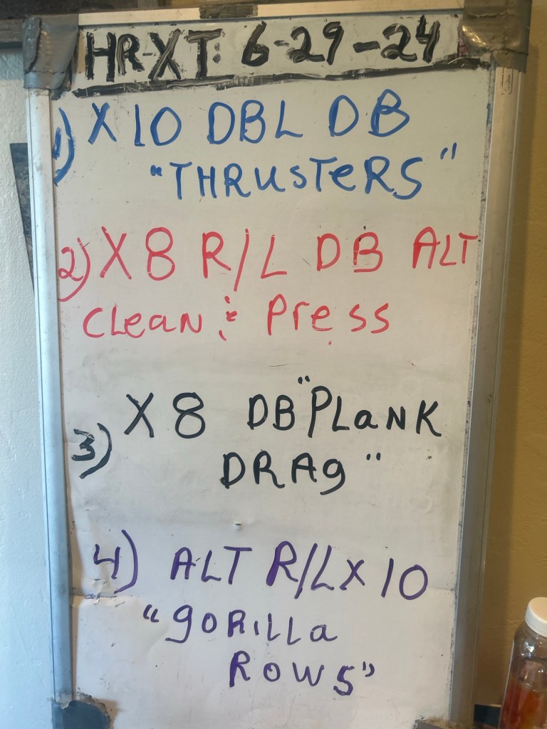 6/29/24. SATURDAY: 8:30 AM. HR/XT/CARRIES/SWINGS and SEAL FND workout