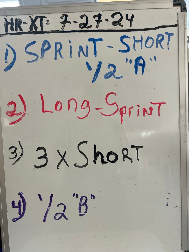 7/27/24 SATURDAY. HR/XT/SPRINTS/SWINGS/MOBILITY/ TRAP BAR DEADLIFTS. 8:30 AM. In Lot “C” at the Seminary College in Strawberry/Mill Valley area. I will open the chain gate about 8:10 to do set -up and gives you time for a warm-up.