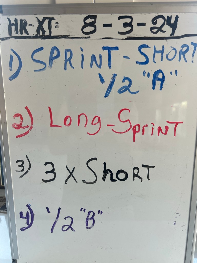 8/1/24 THURSDAY. SPEED-WORK at your local track. Get in the 6 x 30 meter pick-ups, then: