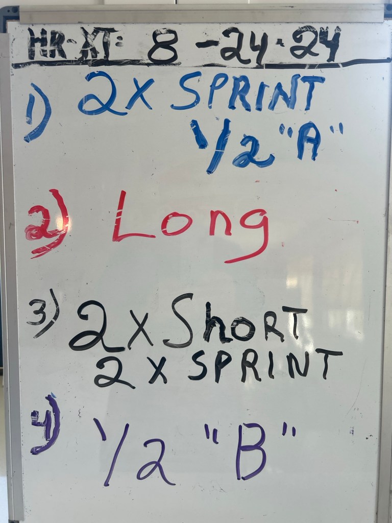 8/24/24 SATURDAY. SATURDAY HR/XT/SWINGS/LOADED CARRIES/SPRINTS/KB LIFTS. 8:30 AM start time in Lot C of the Seminary College, (201 Seminary Dr) in Mill Valley/Strawberry Note that there is a workout board for non-runners. .