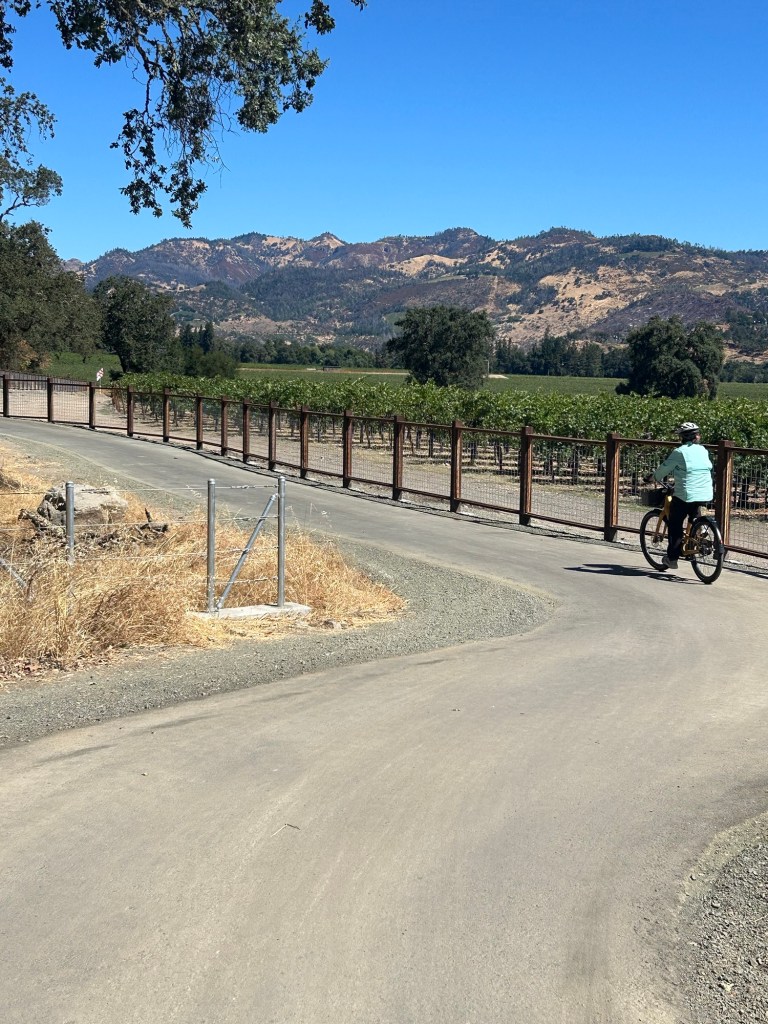 Last Saturday Napa had their official opening of The Vine Trail section from St. Helena to the middle Calistoga where it ends halfway down Lincoln Av. A beautiful job! Sandy and I saw all ages and families riding on Sunday.