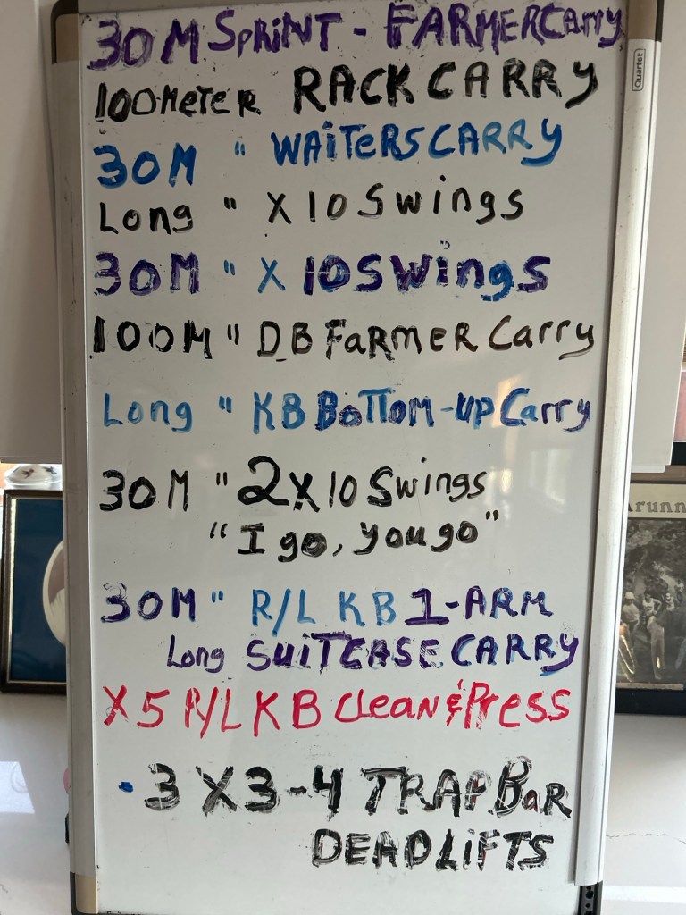 9/28/24 SATURDAY. HR/XT/LOADED CARRIES/SWINGS/KB TRAINING/DEADLIFTS. 8:30 AM The Saturday workout is cancelled for today. Due to too many of the group going out of town! We will pick up in two weeks because on Sat. 10/12/24 our workout site is being used for an event.