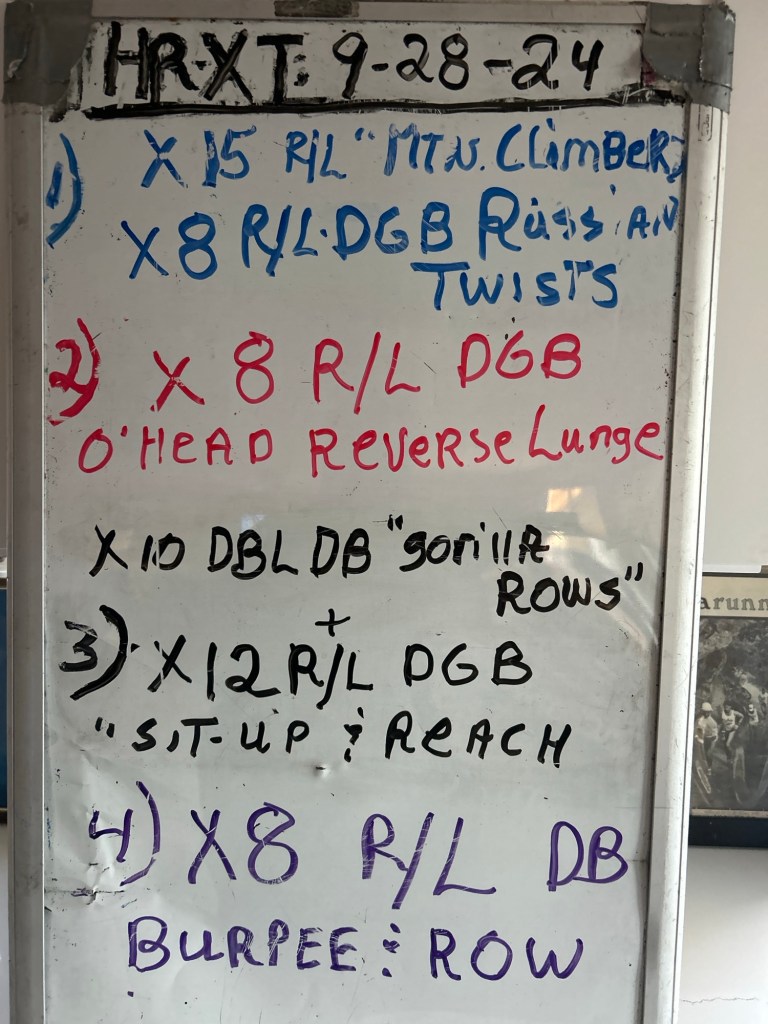 9/25/24 WEDNESDAY. STRENGTH TRAINING CIRCUIT/SWINGS/MOBILITY/DEADLIFTS. 8 AM at Warren’s Gym. Get in the mobility exercises; especially while talking! Then we’ll get in our 60 swings followed by two rounds of the Strength Circuit.