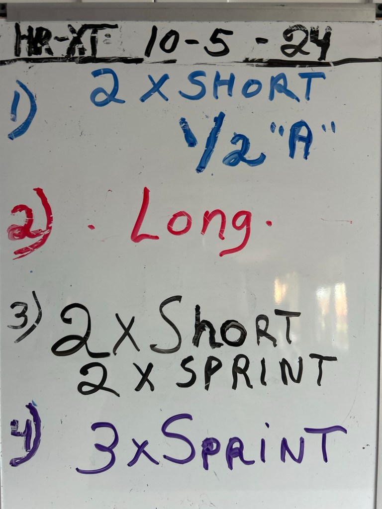 10/3/24 THURSDAY. SPEED-WORK at your local track. After the warm-up mile, skips, butt-kicks and 6 x 30 meters. “Ladder Workout” i.e., Up and down the ladder with interval distances
