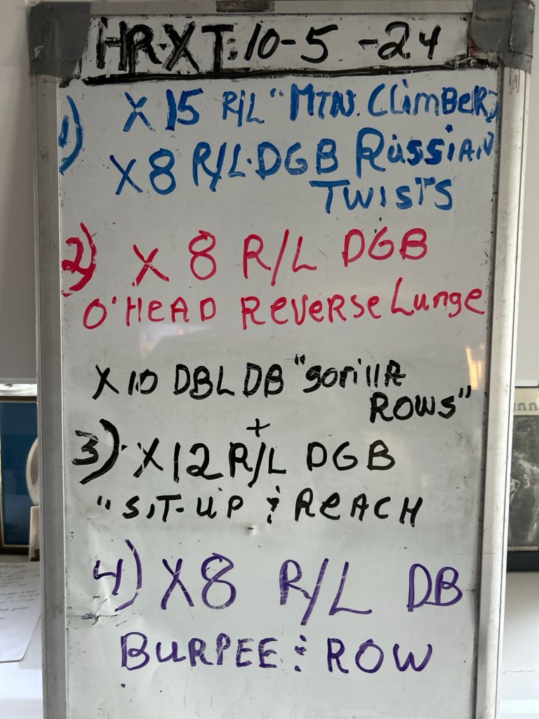 10/2/24 WEDNESDAY. STRENGTH TRAINING CIRCUIT/SWINGS/MOBILITY EXERCISES/DEADLIFTS (two rounds). 8 AM at Warren’s. Get in mobility exercises; we’ll do our 50 swings together. Two rounds of: